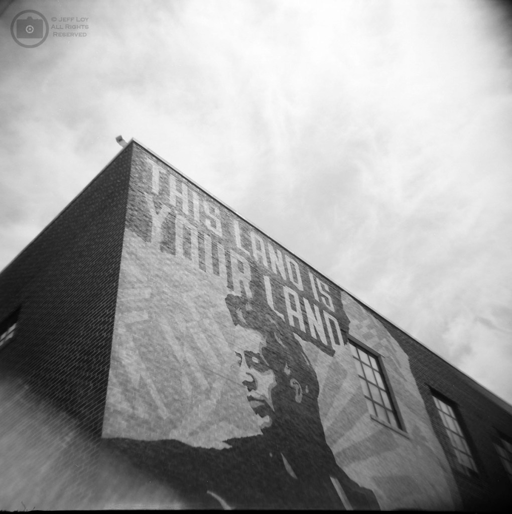The mural outside the Woody Guthrie Center in Tulsa, Oklahoma.